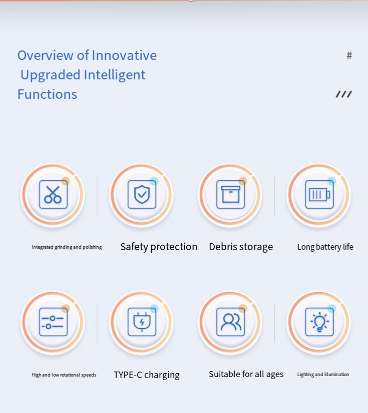 Streamline your nail grooming routine with our electric tools. From clipping to polishing, our multifunctional device simplifies the process, saving you time and effort. Enjoy salon-quality nails at home with the convenience of professional tools at your fingertips.